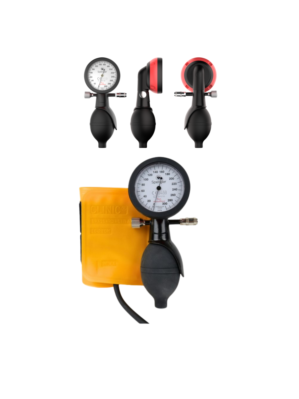 • avec brassard Clinic® jaune décontaminable par immersion (disponible en version brassard Soft Cuff®)